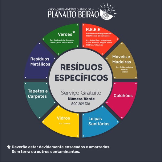 O Município de Seia, através da Associação de Municípios da Região do Planalto Beirão, dispõe de um serviço de recolha gratuita porta-a-porta de resíduos específicos que pelo seu volume, forma ou dimensão, não podem ser recolhidos pelos meios normais de remoção.